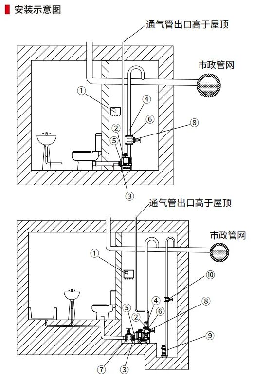 别墅、小型宾馆、饭店、洗浴中心等低于自流排水的生活污水排放